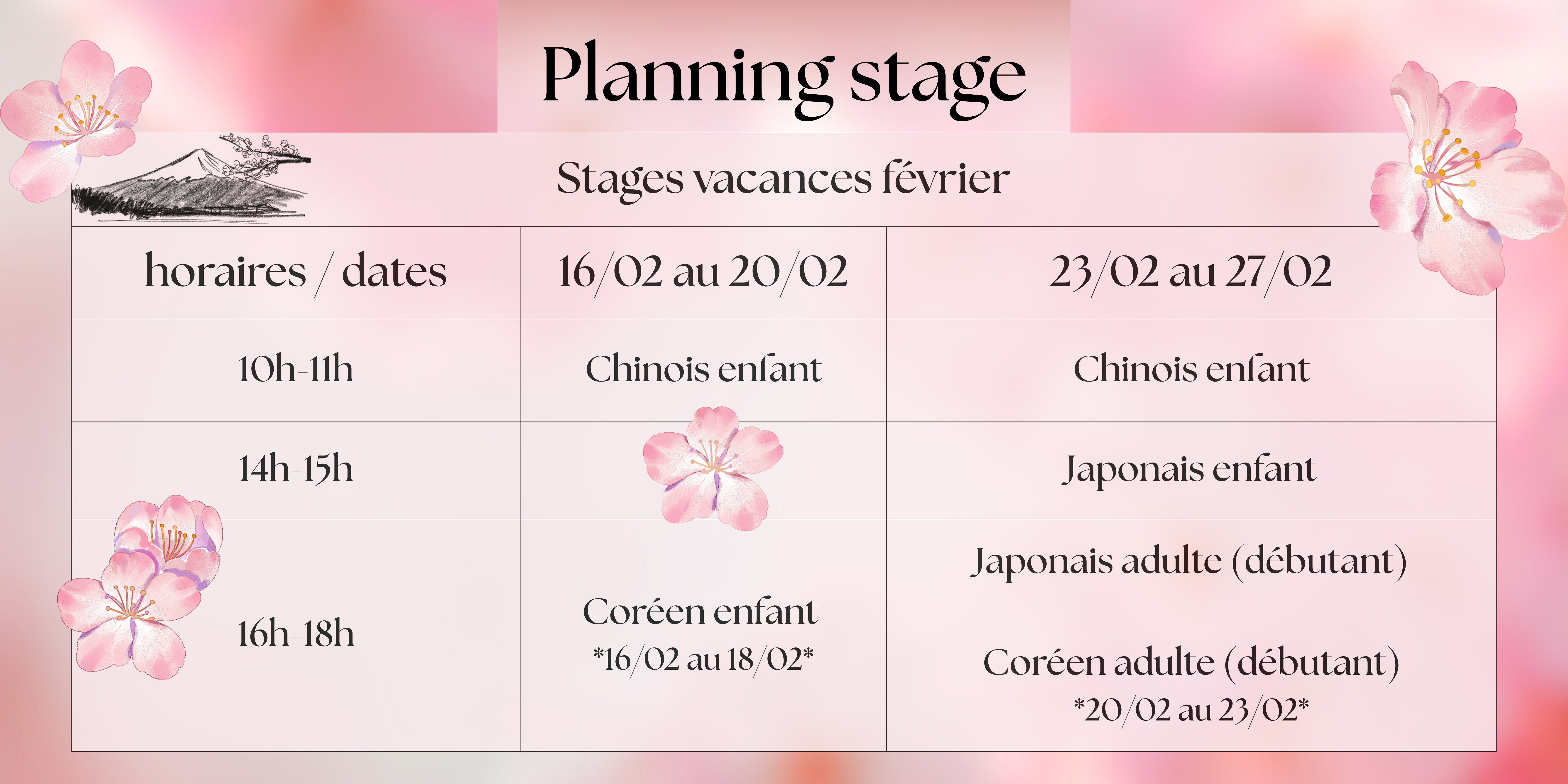 Pendant les vacances, nous proposons des stages intensifs de langues et de calligraphie / peinture chinoise pour les adultes et pour les enfants.