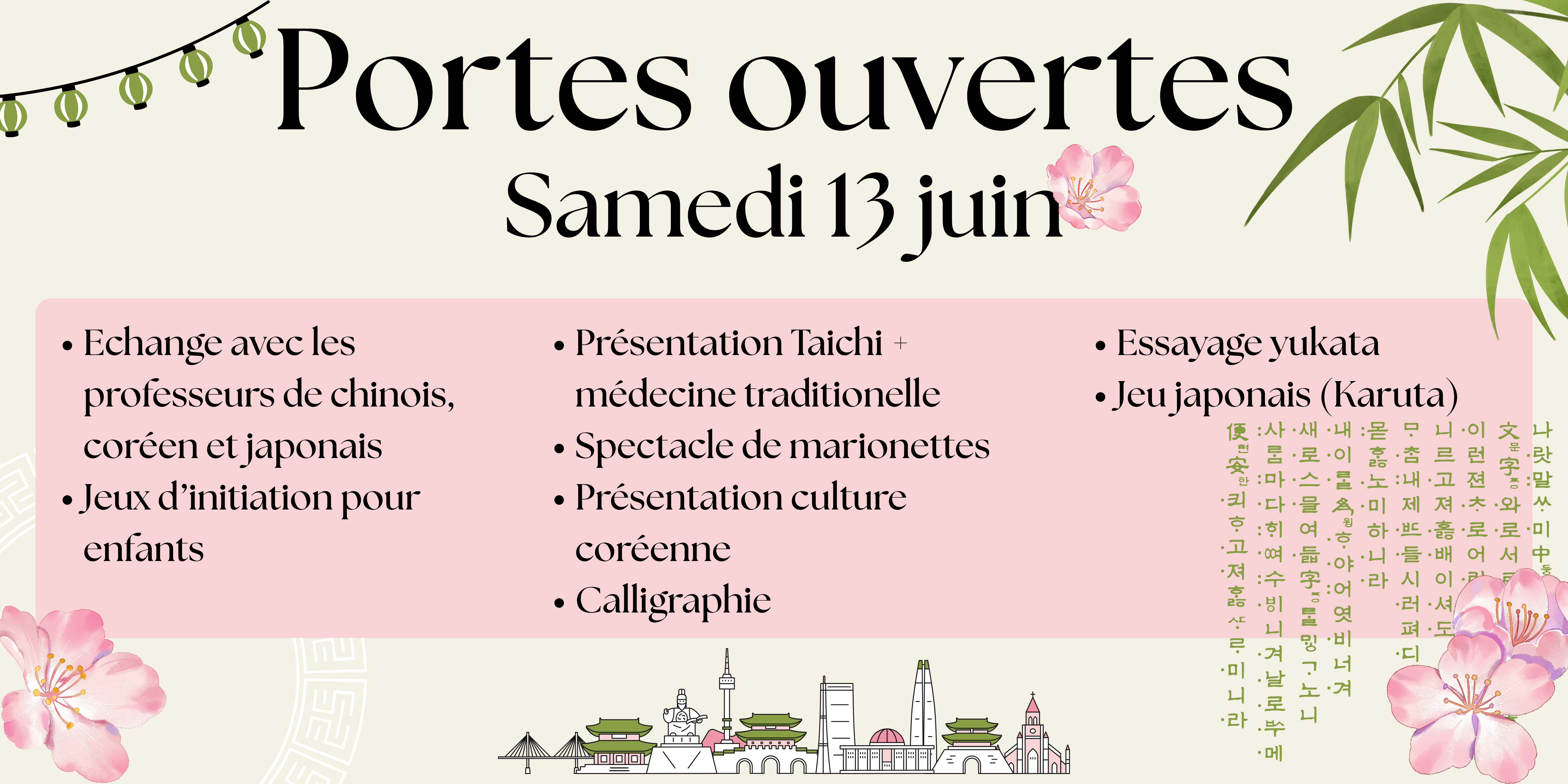 - Cours de chinois, japonais, coréen.