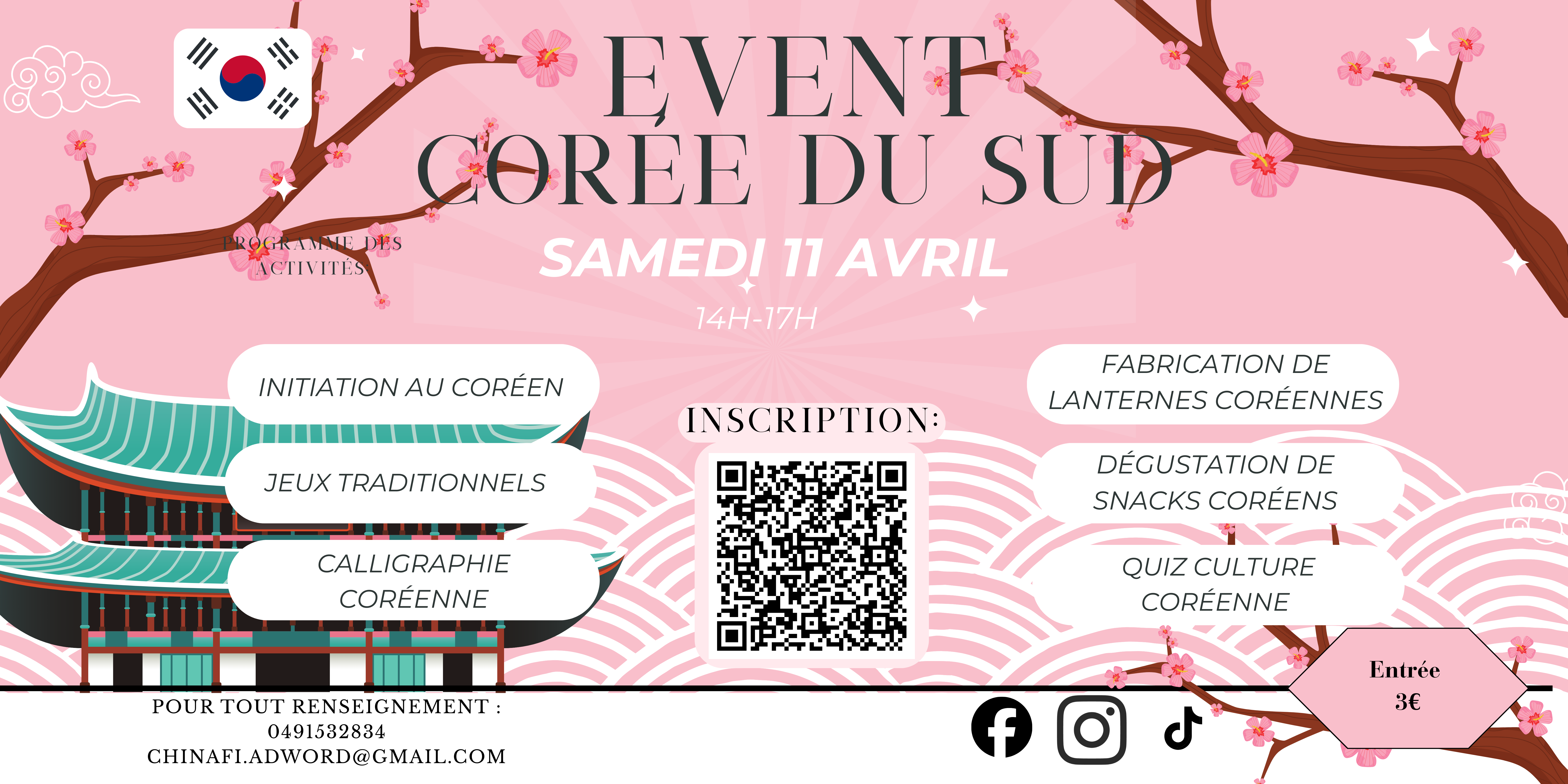 Inscription pour "Event Corée du Sud" : https://forms.gle/bep7KDu6GzDHCT337